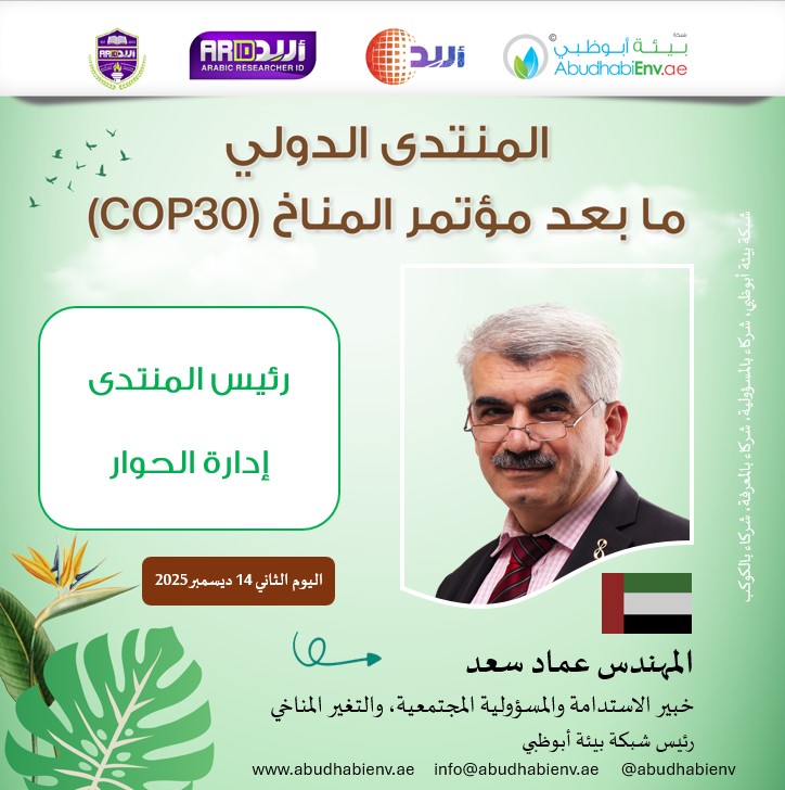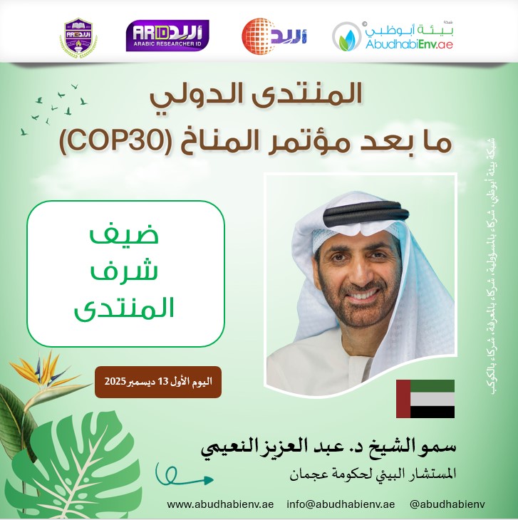 تنظمه شبكة بيئة أبوظبي بالتعاون مع منصة أُريد العلمية الدولية يومي 13 و 14 ديسمبر 2025