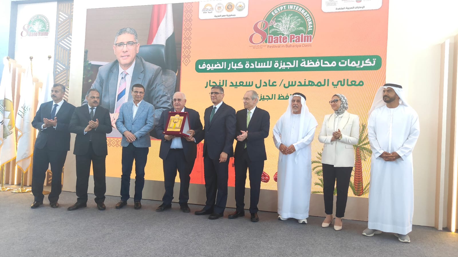 واختتم الحفل بتبادل الهدايا والدروع التذكارية بين الجهات المنظمة للمهرجان حيث قام  المهندس عادل سعيد النجار محافظ الجيزة بتقديم الدروع التذكارية تكريماً لضيوفه الكرام، وسط حفاوة كبيرة من مزارعي ومنتجي التمور في محافظة الواحات البحرية بما حققه المهرجان من نجاح متواصل للعام الثامن على التوالي.