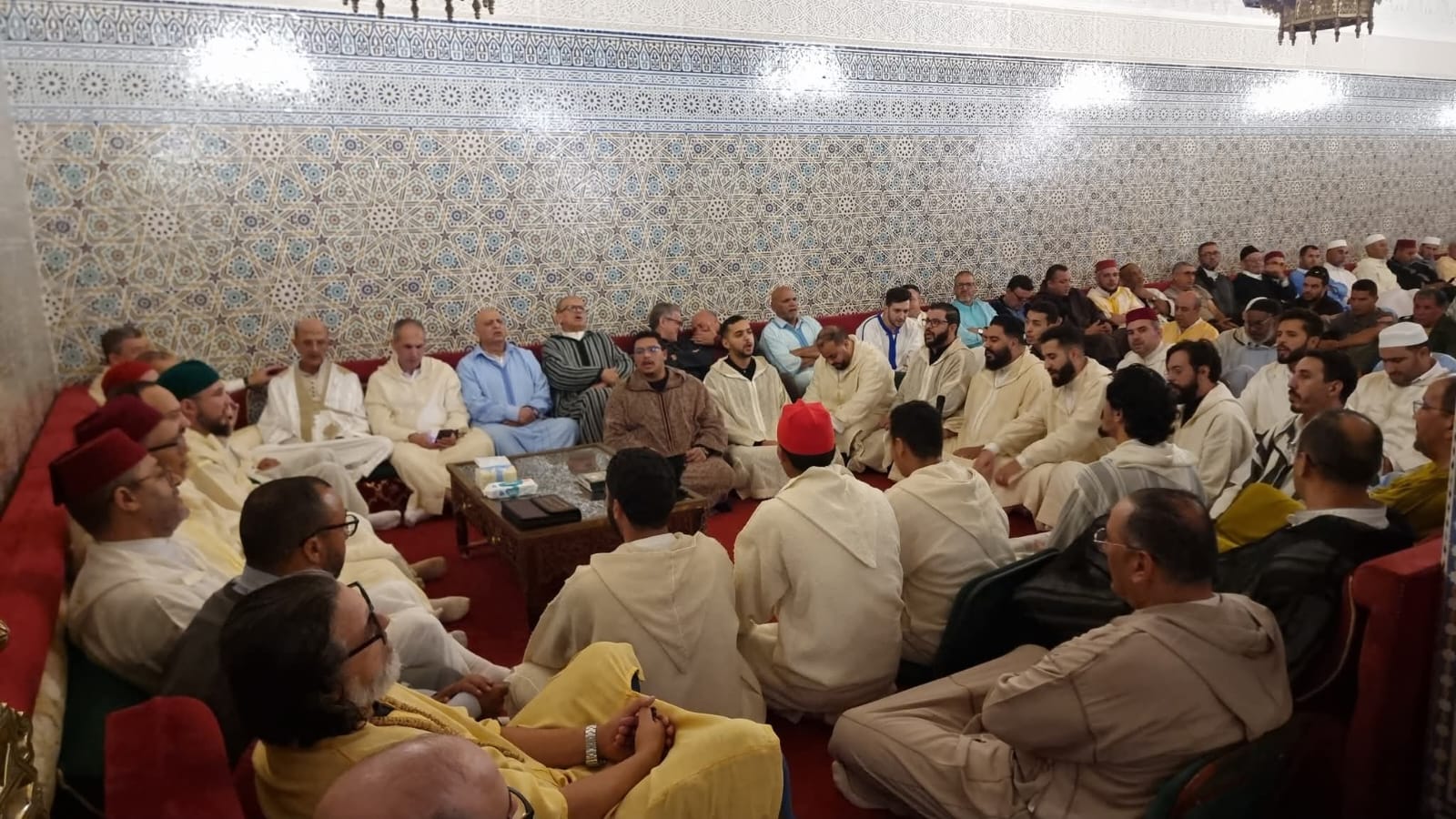 نظّمت الطريقة القادرية البودشيشية، يوم الخميس 2 أكتوبر 2025، مجلساً دينياً وروحياً بمقرّ الزاوية البودشيشية في مداغ، ترحماً على روح جلالة الملك الراحل الحسن الثاني، طيب الله ثراه، وذلك بحضور شيخ الطريقة، مولاي معاذ القادري بودشيش، إلى جانب جمع من المريدين وحملة كتاب الله.