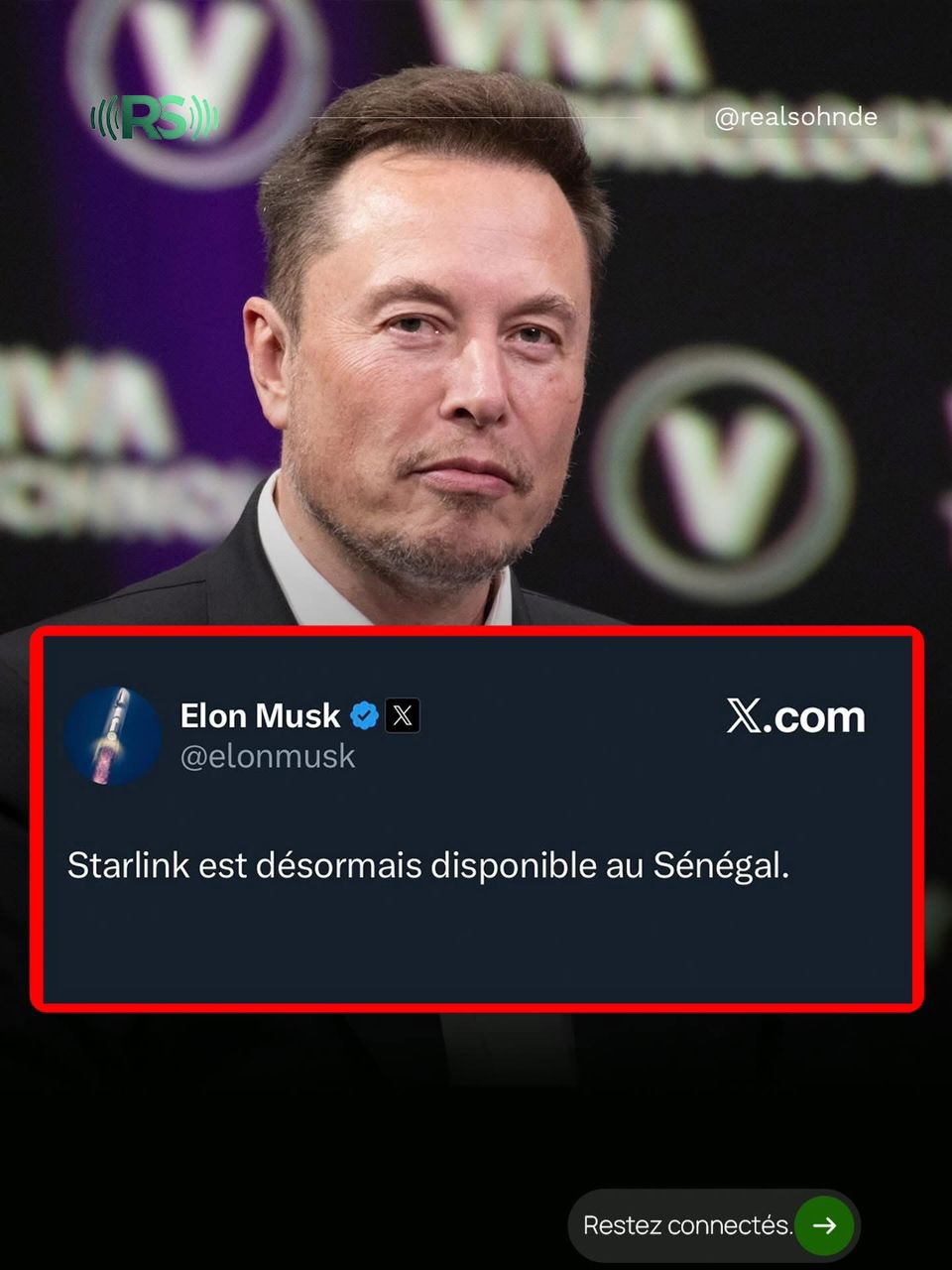 أعلنت السلطات السنغالية رسميًا دخول شركة Starlink، التابعة لرجل الأعمال الأمريكي إيلون ماسك، إلى السوق الوطنية، لتقديم خدمة الإنترنت عالي السرعة عبر الأقمار الصناعية، خصوصًا في المناطق الريفية والنائية التي تعاني ضعفًا في البنية التحتية للاتصالات الأرضية والمحمولة.