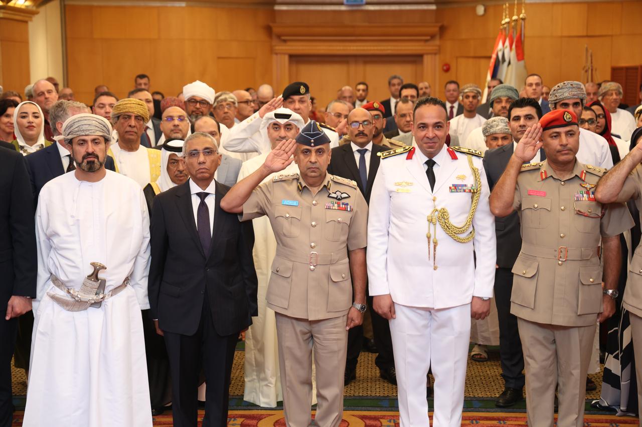 العميد الركن طيار على بن سعيد بن حمد البلوشى ضيف شرف الحفل، والسفير ياسر محمد أحمد شعبان سفير جمهورية مصر العربية المُعتمد لدى سلطنة عُمان ، وعدد من أصحاب السمو، وكبار الضباط بقوات السُّلطان المسلحة ورؤساء البعثات الدبلوماسية المعتمدين لدى سلطنة عُمان وعدد من أبناء الجالية المصرية.