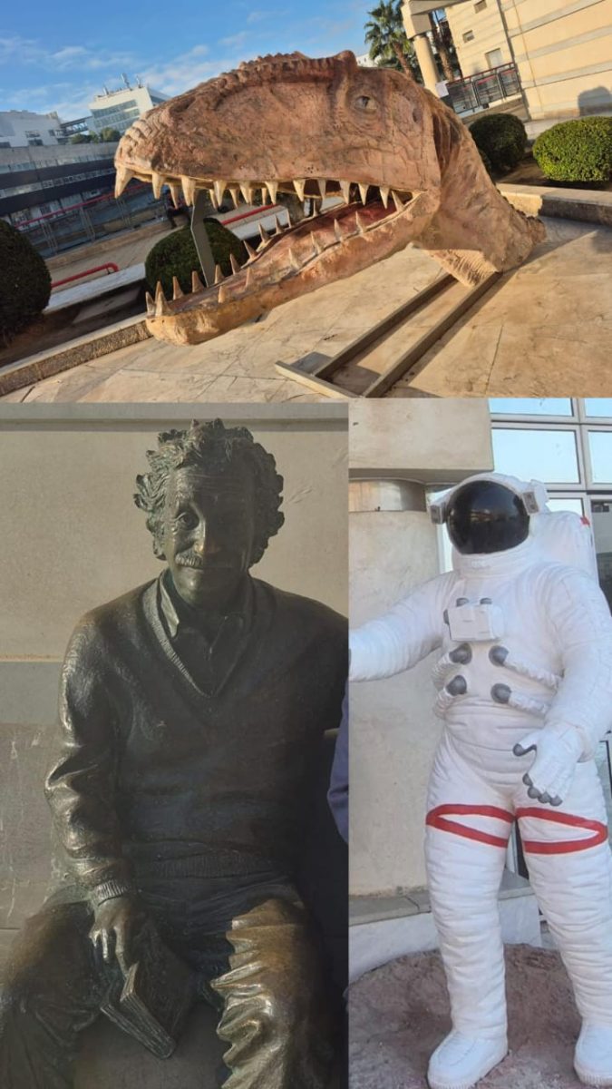 À droite de la salle accueillant l’atelier sur la protection de la Méditerranée, sur l’esplanade de la Cité scientifique, trône une statue d’Albert Einstein, serein, un livre entre les mains, comme méditant sur le cheminement des idées et les mutations du savoir, tandis qu’un astronaute en combinaison blanche se tient prêt, le bras tendu vers l’inconnu.